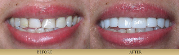 Through artistry and laboratory technique, we achieve outstanding and beautiful results restoring teeth with all- Porcelain Veneers and Porcelain Crowns. The cutting edge technology of adhesive bonding dentistry makes these restorations second to none. Many of the before and after cases you see here utilize this type of restoration-note their lifelike vitality. By removing unhealthy or cracked tooth structure and replacing it with natural looking porcelain, which fits the tooth like a thimble or jacket, we protect the remaining tooth structure and achieve a beautiful result.